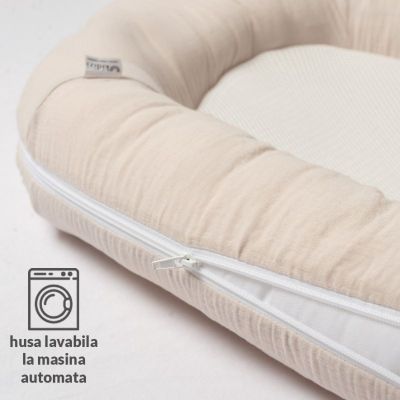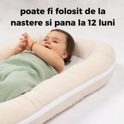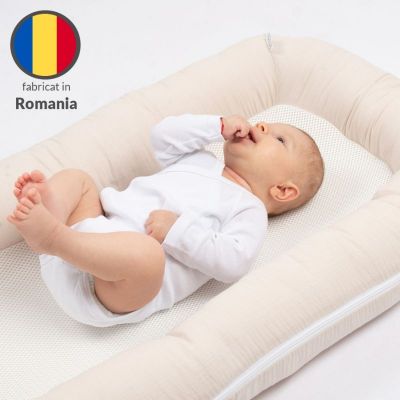 Despre Baby nest ergonomic cu baza respirabila si husa detasabila din muselina Kidizi Airnest Natur