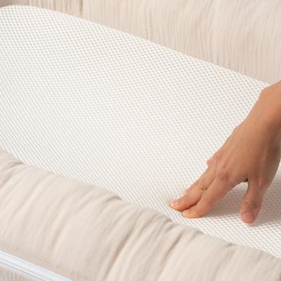 Kidizi Airnest este cuibul pentru bebelusi care redefineste standardele de confort si siguranta, printr-o inovatie esentiala: baza sa speciala, respirabila, realizata dintr-un material tehnic cu structura tip fagure, care permite circulatia aerului si previne supraincalzirea. Este alegerea ideala pentru zilele calduroase, dar si o optiune sigura si comoda pentru tot parcursul anului.