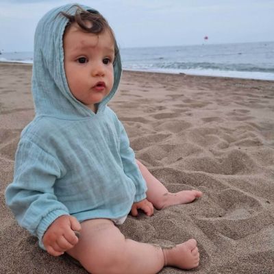 Despre Bluza copii din muselina cu maneca lunga si gluga Kidizi Amos chilli 6-12 luni