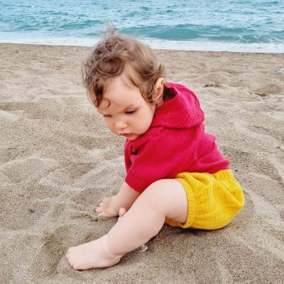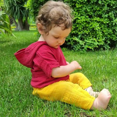 Despre Bluza din muselina cu maneca scurta si gluga Kidizi Aris chilli 1-2 ani