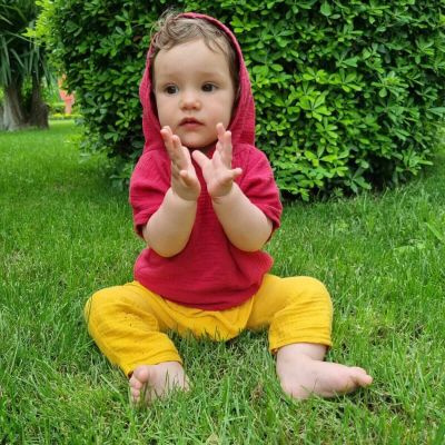 Despre Bluza din muselina cu maneca scurta si gluga Kidizi Aris chilli 6-12 luni