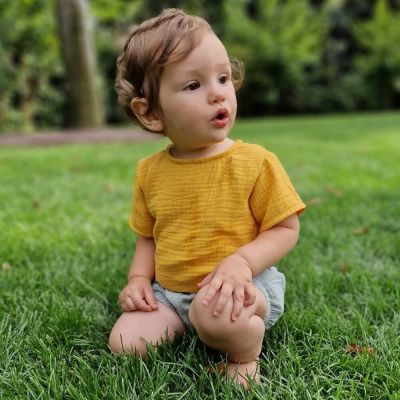 Body-ul Theo se potriveste cu fusta din muselina cu volanase Daria, sau cu panatalonii din muselina Zuma, Bloomersi Blair, sau chiloteii din muselina Frodo.