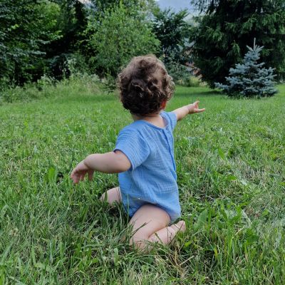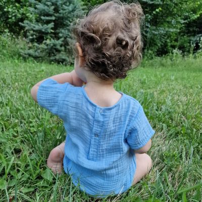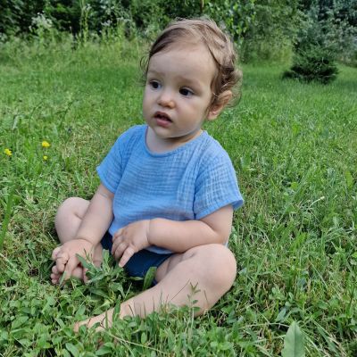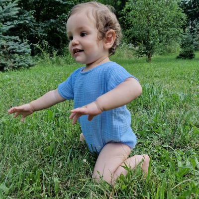 Despre Body bebelusi din muselina cu maneca scurta Kidizi Theo sky blue 9-12 luni