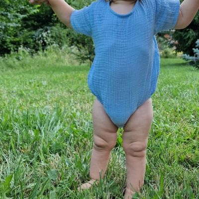 - este usor de imbracat - avem o latime mai mare decat la bodyurile clasice intrucat muselina nu este elastica, iar la gat,in partea din spate exista doua capse;