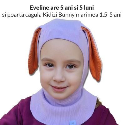 Despre Cagula copii reglabila cu urechiuse din bumbac certificat, Kidizi Bunny Purple 6-18 luni