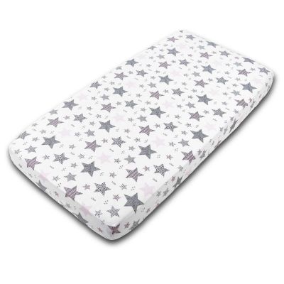 Despre Cearceaf din bumbac cu elastic roata pentru patut 140x70 cm Kidizi All Pink Stars