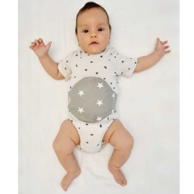 Despre Centura anticolici reglabila Slim Kidizi Grey Stars, include pernuta samburi cirese detasabila