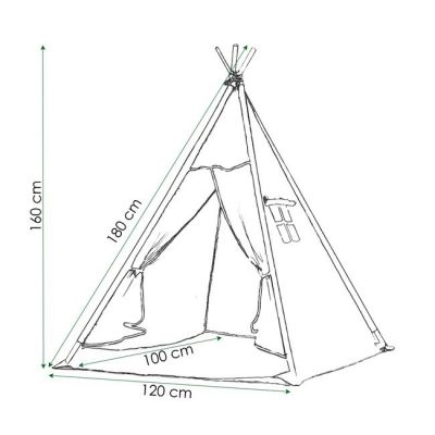 - Cadrul din care este construit cortul teepee este din lemn masiv de pin.