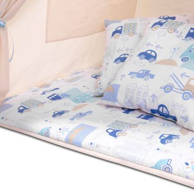 Mantia cortului, covorasul si cele doua pernute sunt din bumbac 100%