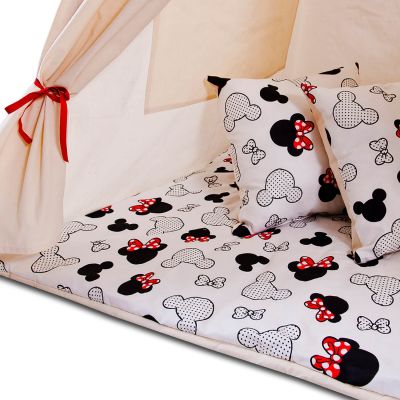 Mantia cortului, covorasul si cele doua pernute sunt din bumbac 100%