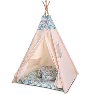 Despre Cort copii stil indian Teepee Tent Kidizi Mint Unicorn, include covoras gros si 2 perne