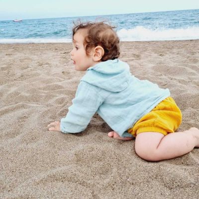 Despre Pantaloni scurti bufanti pentru bebelusi din muselina dubla Bloomers Blair Kidizi curry 3-6 luni