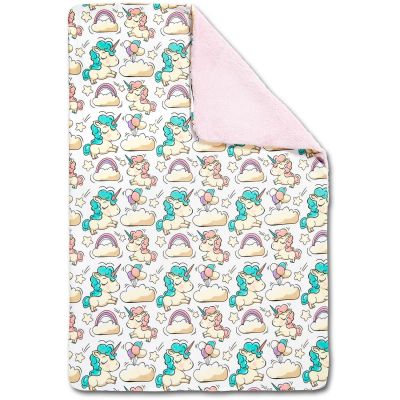 Despre Paturica dubla pufoasa cu doua fete 100x78 cm Kidizi Fluffy Pink Beige Unicorn