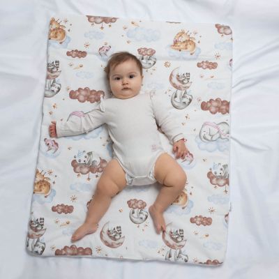 Pentru ca paturica sa nu fie nici prea groasa, dar nici prea subtire, in interior am introdus un strat de vatelina antialergica astfel incat paturica sa tina si de cald dar sa se si muleze in jurul corpului bebelusului.