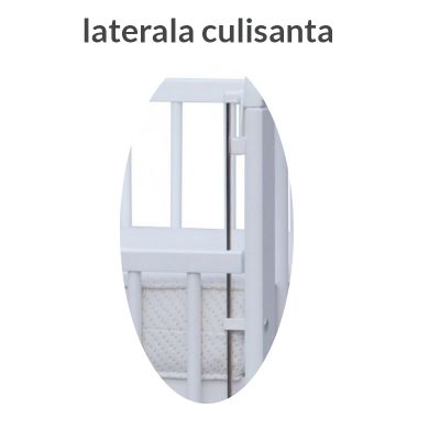 - Pentru a facilita accesul la bebelus, acest model de patut este prevazut cu o laterala culisanta