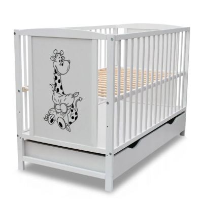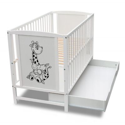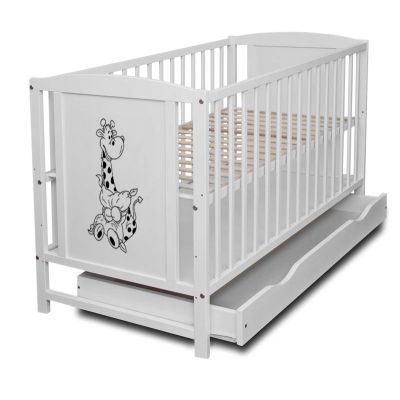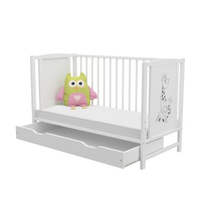 Despre Patut din lemn masiv 120x60 cm Bria alb cu sertar
