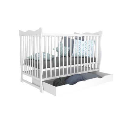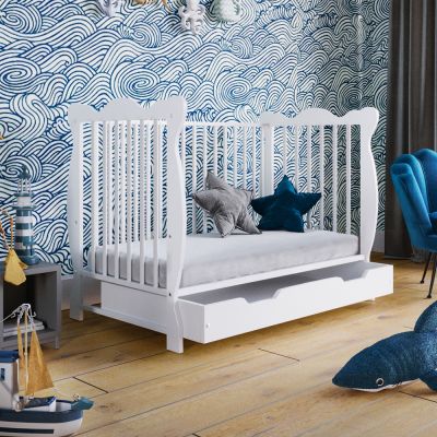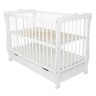 Despre Patut din lemn masiv 120x60 cm Isla alb cu sertar si saltea 10 cm