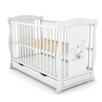 Despre Patut din lemn masiv 2 in 1 Maya alb cu sertar