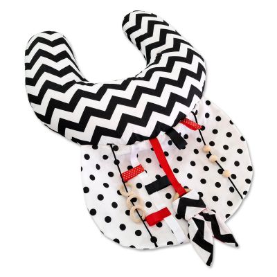 Pe langa bilutele si inele de lemn insirate pe doua snururi, jucaria de dentitie iepuras,pe paturica se regasesc si benzi si snururi cu texturi diferite cat si doua urechiuse cu care bebelusii se pot juca sau pot fi folosite ca si agatatori pentru alte jucarii