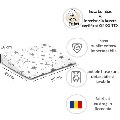Husa exterior detasabila din bumbac - Husa exterioara este confectionata din bumbac 100% certificat si este prevazuta cu fermoar ce va permite sa o inlaturati cu usurinta si sa o spalati ori de cate ori este nevoie.