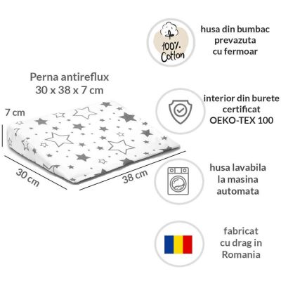O sansa in plus pentru un somn odihnitor - Aceasta perna anti-reflux pentru bebelusi este solutia perfecta pentru a spori confortul si calitatea somnului bebelusului. Daca bebelusul dumneavoastra sufera de reflux, colici sau congestie nazala, aceasta perna va va oferi usurare, oferindu-i bebelusului dar si dumneavoastra un somn de noapte mai linistit si mai odihnitor