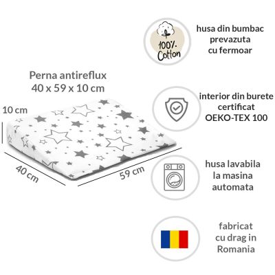 O sansa in plus pentru un somn odihnitor - Aceasta perna anti-reflux pentru bebelusi este solutia perfecta pentru a spori confortul si calitatea somnului bebelusului. Daca bebelusul dumneavoastra sufera de reflux, colici sau congestie nazala, aceasta perna va va oferi usurare, oferindu-i bebelusului dar si dumneavoastra un somn de noapte mai linistit si mai odihnitor