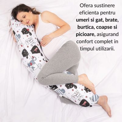 Despre Perna gravide 3 in 1 cu husa detasabila Kidizi Lena, lungime 160 cm, Happy Kitten