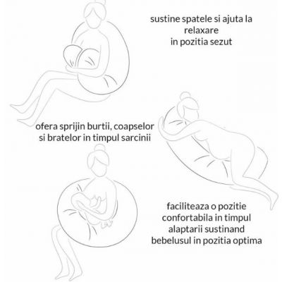- poate fi utilizata ca si perna gravide, perna alaptare, suport bebe