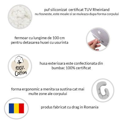 - poate fi utilizata ca si perna gravide, perna alaptare, suport bebe
