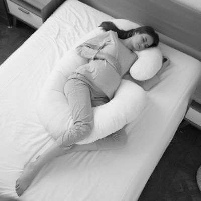 - Forma “incolacita” din partea de jos a pernei va permite sa va intoarceti pe alta parte in timpul somnului fara a fi nevoie sa mutati si perna – zona coapselor si a burticii va ramane sustinuta tot timpul.