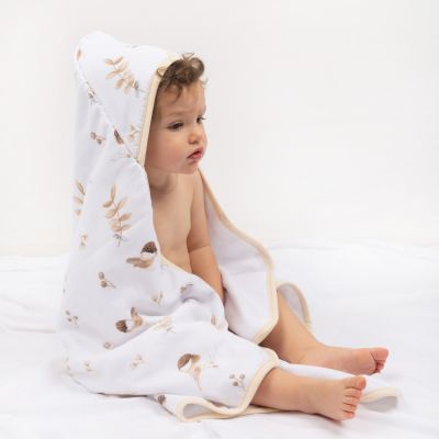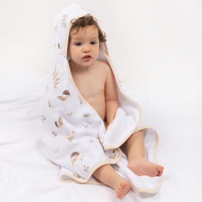 Confectionat pe o parte din frotir pufos cu putere de absorbtie mare, perfect pentru a-l inveli pe bebe cand iese de la baita, iar cealalta parte este confectionata din muselina cu textura usoara si delicata cu pielea sensibila a bebelusului, ideala pentru vara si nu numai.