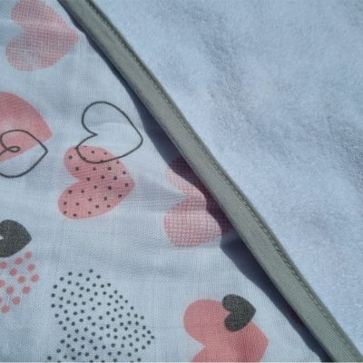 Despre Prosop bebe 80x80 cm cu doua fete muselina si frotir Kidizi Pink Hearts