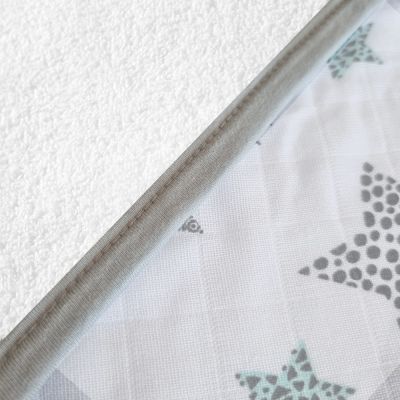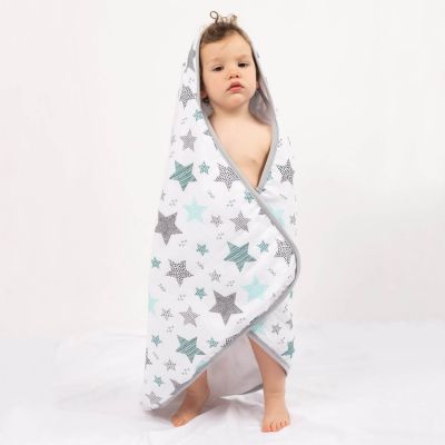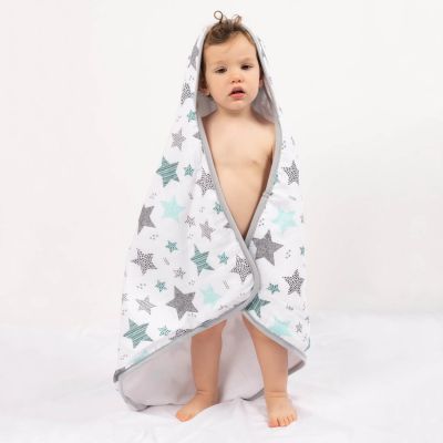 Confectionat pe o parte din frotir pufos cu putere de absorbtie mare, perfect pentru a-l inveli pe bebe cand iese de la baita, iar cealalta parte este confectionata din muselina cu textura usoara si delicata ideala pentru vara si nu numai.
