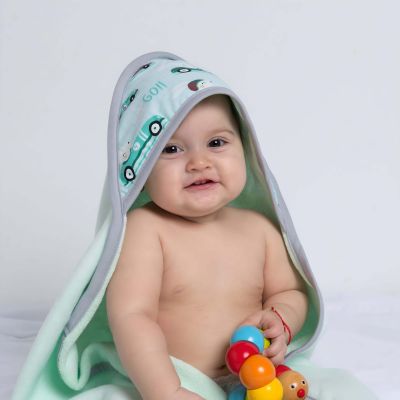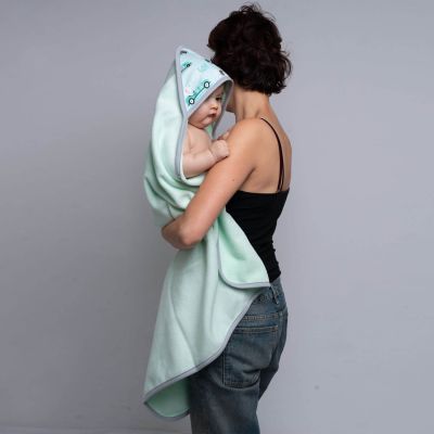 Un prosopel moale confectionat din frotir pufos cu putere de absorbtie mare, perfect pentru a-l inveli pe bebe cand iese de la baita.
