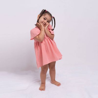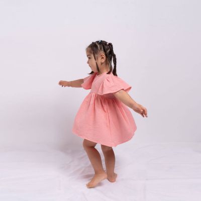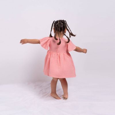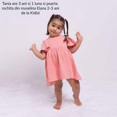 Despre Rochita din muselina cu maneca scurta si volanase Kidizi Elana salmon 2-3 ani