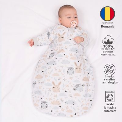 Despre Sac de dormit copii cu maneci 0-3 luni Kidizi Forest Friends, 1 tog, bumbac 100%, pentru toamna/iarna