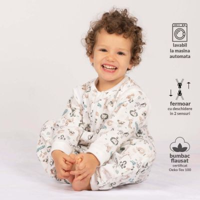Despre Sac de dormit copii cu picioare si maneci detasabile din bumbac flausat 18-36 luni Kidizi Safari,1 tog