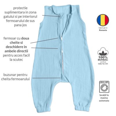 Despre Sac de dormit copii de vara din muselina dubla cu picioare 6-18 luni Kidizi Sky 0.3 tog, bumbac 100%