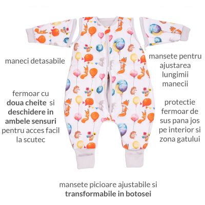 Despre Sac de dormit copii din bumbac cu picioare si maneci detasabile 6-18 luni Kidizi Baloon Friends, 1 tog