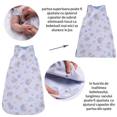 Despre Sac de dormit copii din bumbac reglabil 0-24 luni Kidizi Koala Dreams Blue, 1 tog