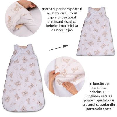 Despre Sac de dormit copii din bumbac reglabil 0-24 luni Kidizi Sleepy Teddy, 1 tog