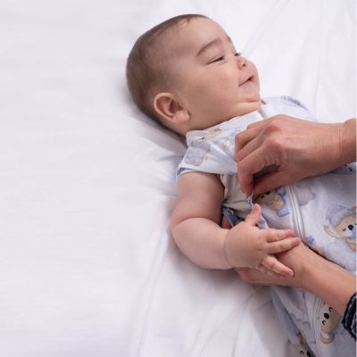 Un element distinctiv al acestui sac de dormit este pozitionarea fermoarului care pe langa rolul de a facilita imbracarea/dezbracarea si de a oferi acces la scutec nu incomodeaza copilul indiferent daca doarme pe burta sau pe lateral.