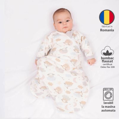 Despre Sac de dormit cu maneci din bumbac flausat Kidizi On a Cloud Pastel, 0-3 luni, 1 tog