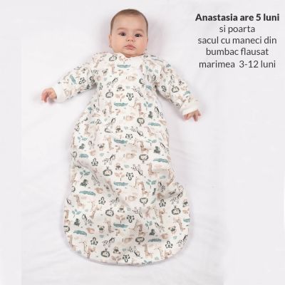 Despre Sac de dormit cu maneci din bumbac flausat Kidizi Safari,12-18 luni, 1 tog