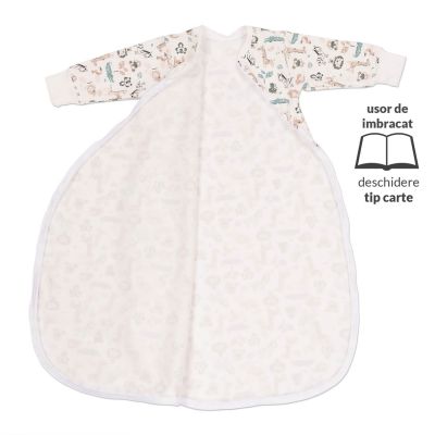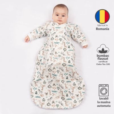 Despre Sac de dormit cu maneci din bumbac flausat Kidizi Safari, 3-12 luni, 1 tog