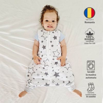 Despre Sac de dormit cu picioare de vara din muselina 6-18 luni Kidizi Galaxy Grey, 0.5 tog