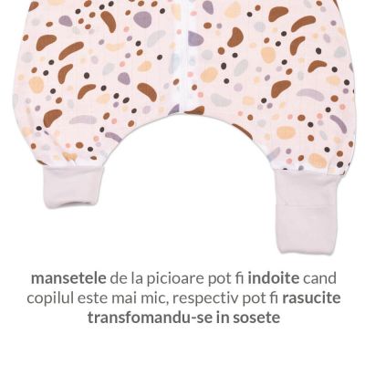 Cu un design bine gandit ce ofera mobilitate copilasului, saculetul de dormit cu picioare poate fi utilizat in majoritatea cazurilor o perioada mai lunga decat cea recomandata de producator. Secretul din spatele acestui aspect il reprezinta piciorusele croite astfel incata ele sa poate fi indoite pentru atuncai cand copilasul este mai mic, sau desfacute pentru atunci cand creste.
