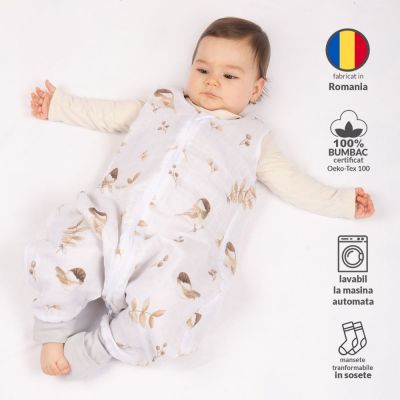 - Saculetul de dormit Kidizi din muselina a fost creat special pentru perioada calda a anului si este recomandat de la 25 de grade in sus