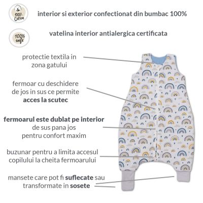 Despre Sac de dormit cu picioare pentru copii 18-36 luni Kidizi Blue Rainbow, 1 tog