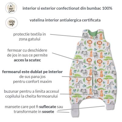Despre Sac de dormit cu picioare pentru copii 18-36 luni Kidizi Safari, 1 tog